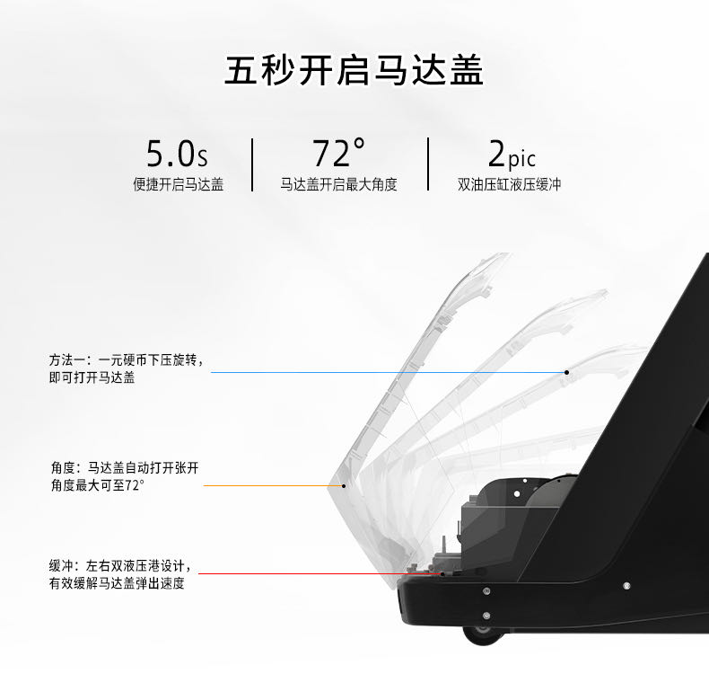 采用一元硬幣5秒開啟馬達(dá)蓋技術(shù),便捷上油潤滑系統(tǒng),維護(hù)保養(yǎng)更方便。