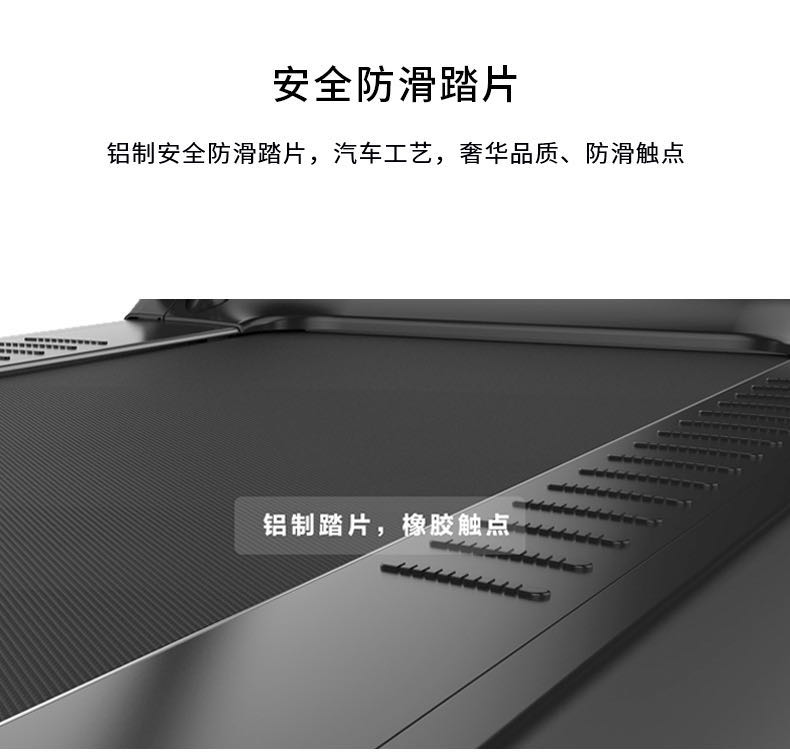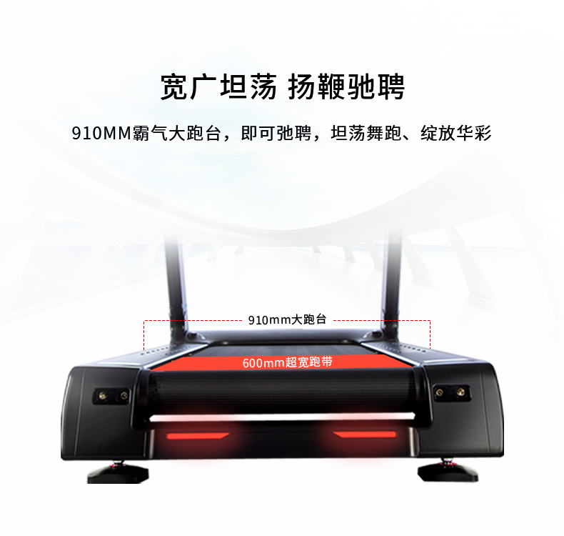 910mm寬廣跑臺600mm超寬跑步空間,給你帶來無拘束的暢跑體驗(yàn),高強(qiáng)度跑帶配合鋁質(zhì)防滑踏板,更為你的運(yùn)動(dòng)保駕護(hù)航。