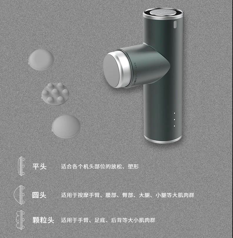 化繁為簡(jiǎn),V1型筋膜槍配有3款按摩頭:平頭、圓頭、顆粒頭,每款按摩頭都有多種按摩服務(wù)功能,可專(zhuān)業(yè)、細(xì)致照顧每處肌肉群,感受更加舒適專(zhuān)業(yè)的按摩體驗(yàn)。